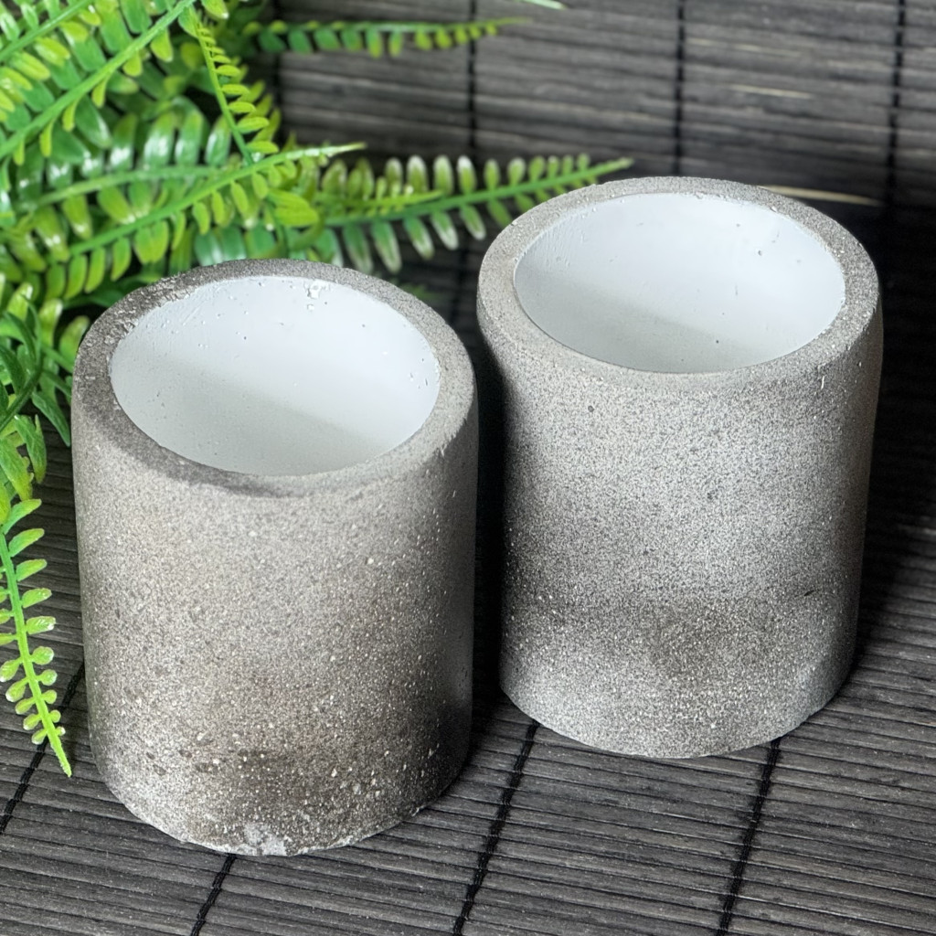 ∼ 8 cm külső, ∼6 cm belső átmérőjű és ∼10 cm magas henger alakú tárolók.