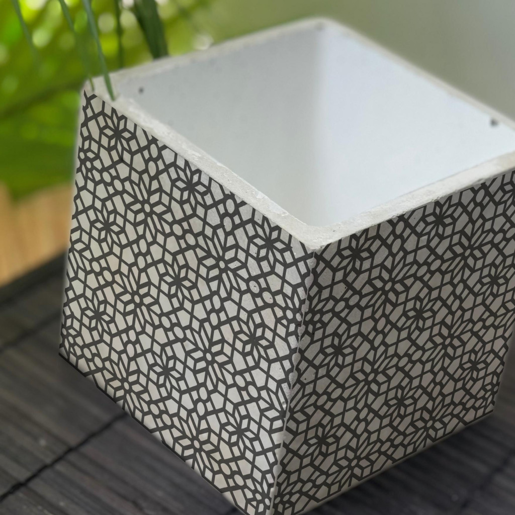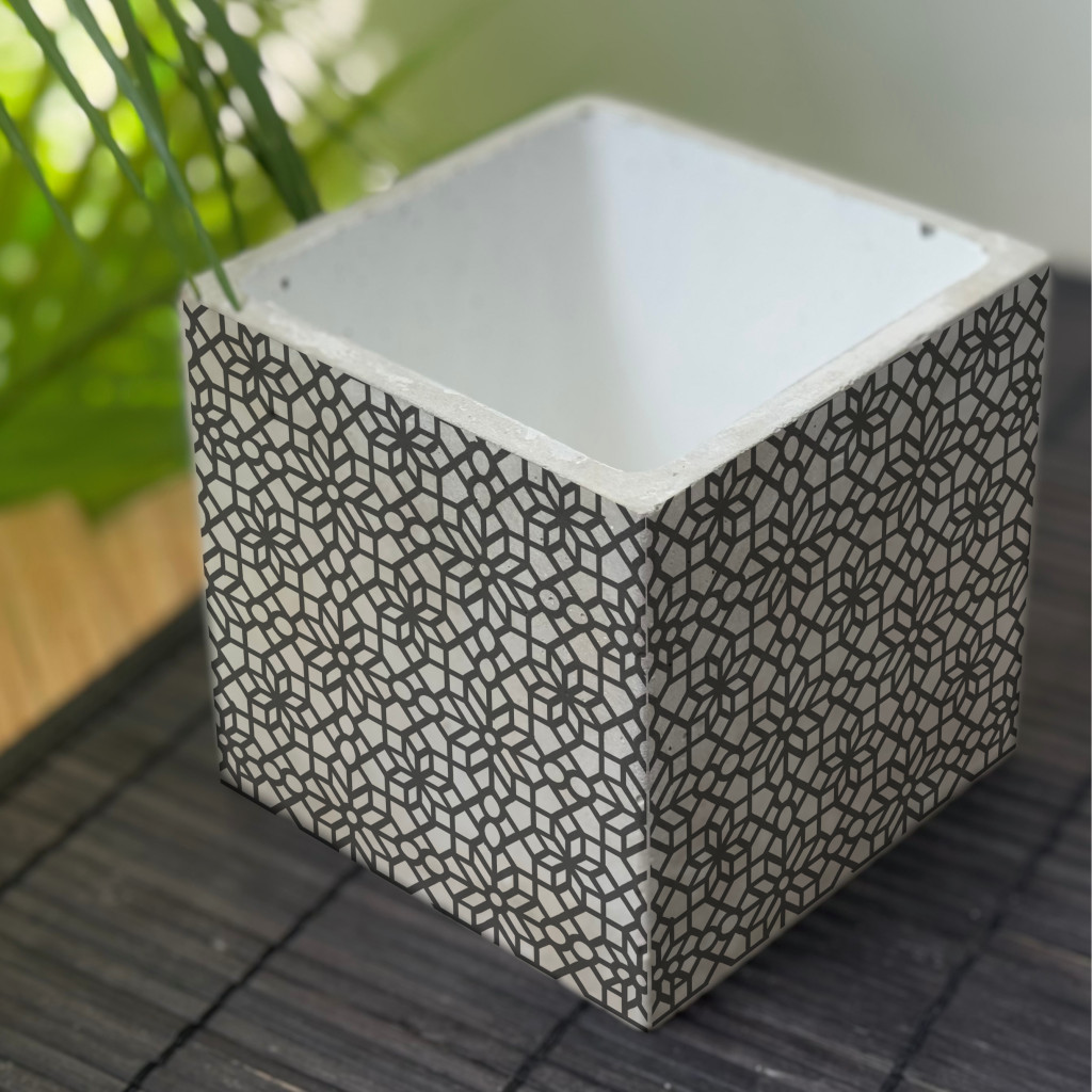 Közel-keleti mintás beton kaspó - kocka, 4 oldalán mintázott