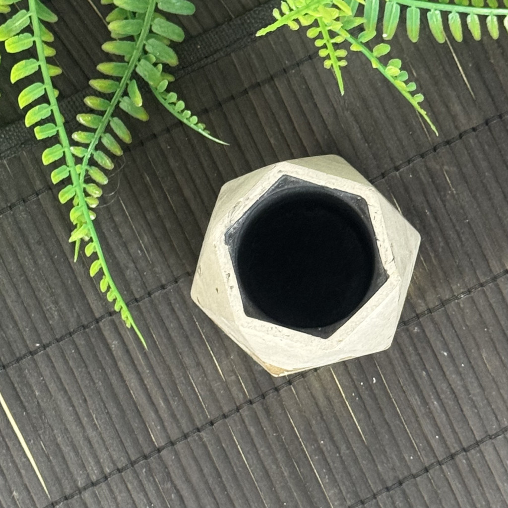 ∼ 10 x 8 x 8 cm-es külső, és ∼ 4 cm-es belső átmérőjű méretű poligon tároló.