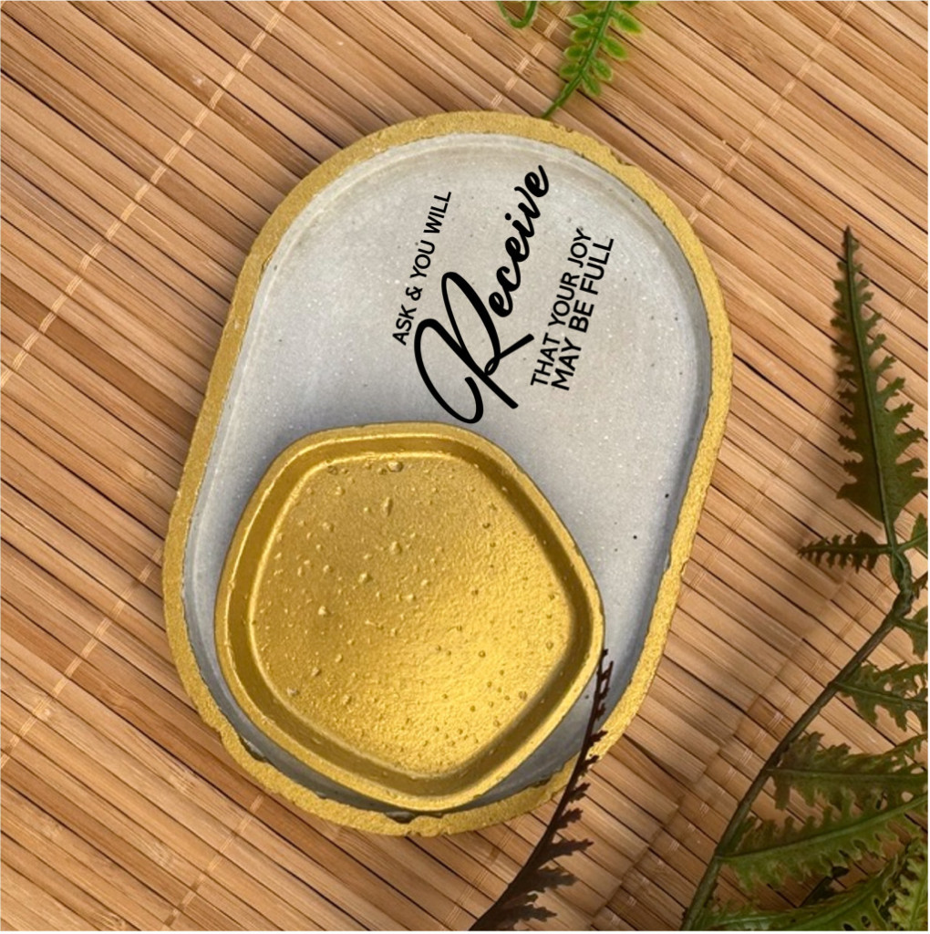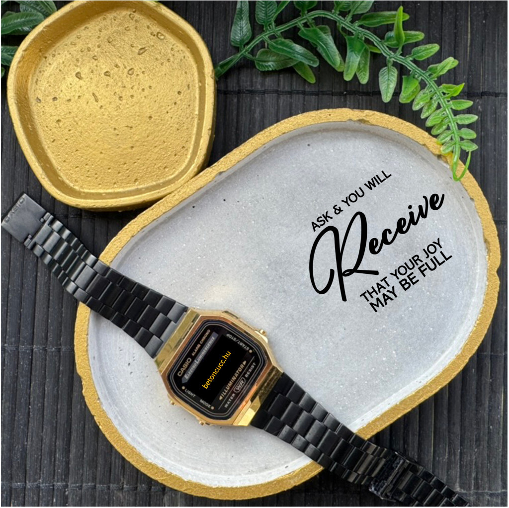 - ∼ 7,5cm átmérőjű mini tényér, aranyszínű festékkel bevonva