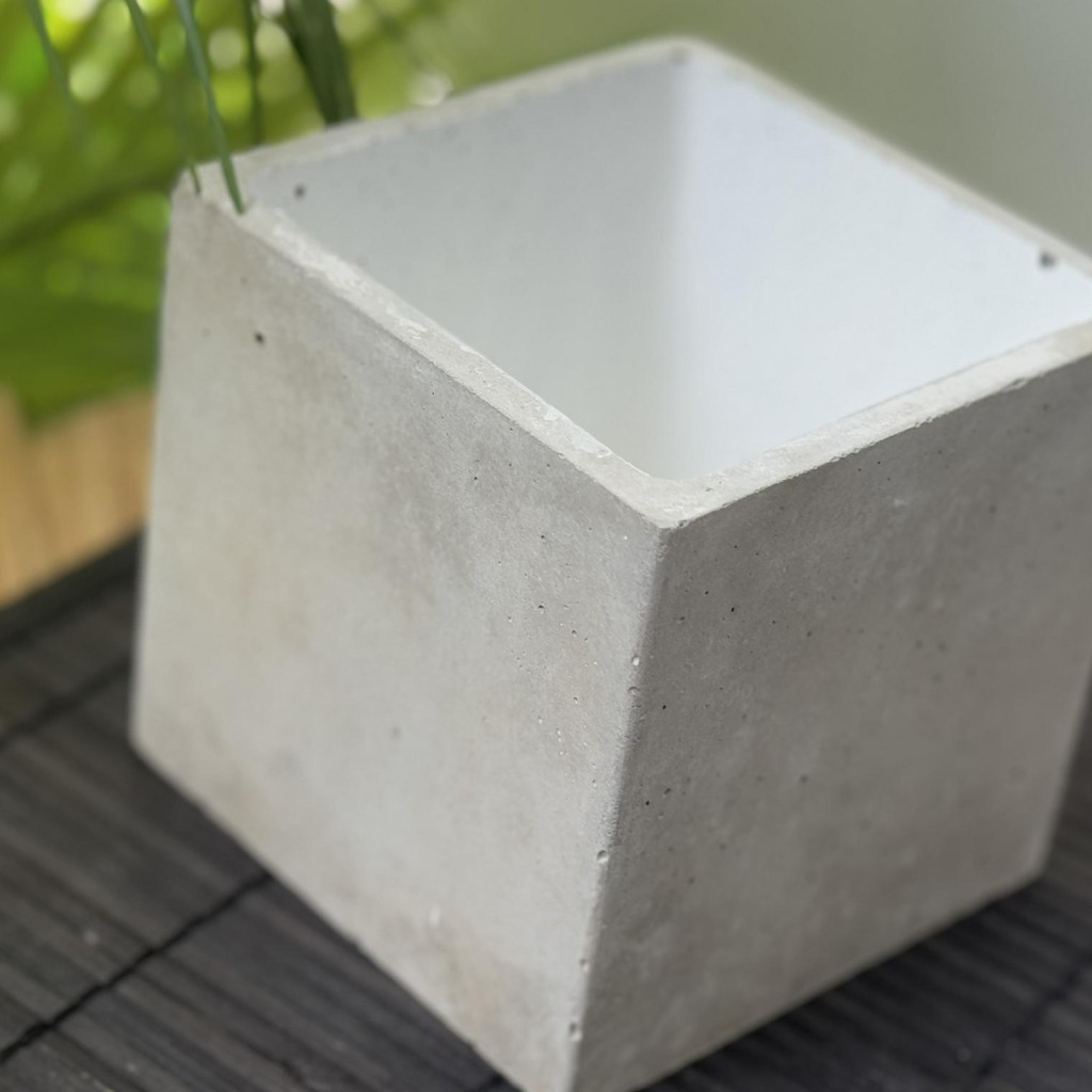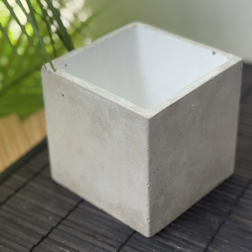 Beton kaspó - kocka, fehér belsővel
