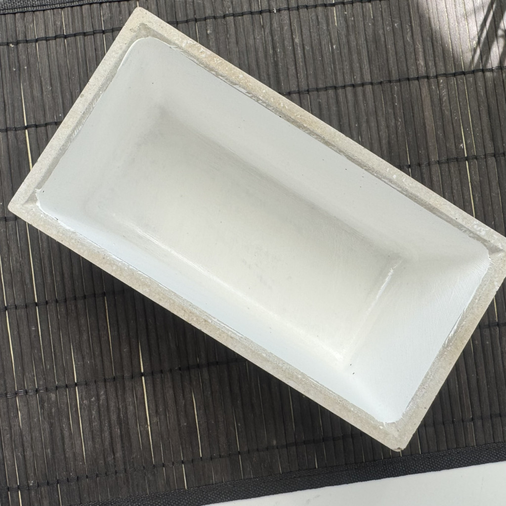Anyaga beton, belseje fehérre festett. A termék alja karcgátló anyaggal van ellátva.