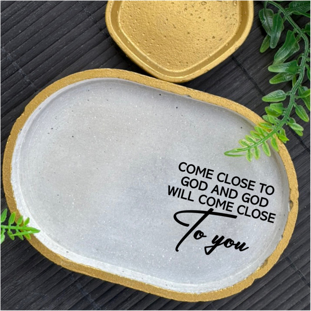 Come close to God and God will come close to you - ovális kicsi dekor tányér