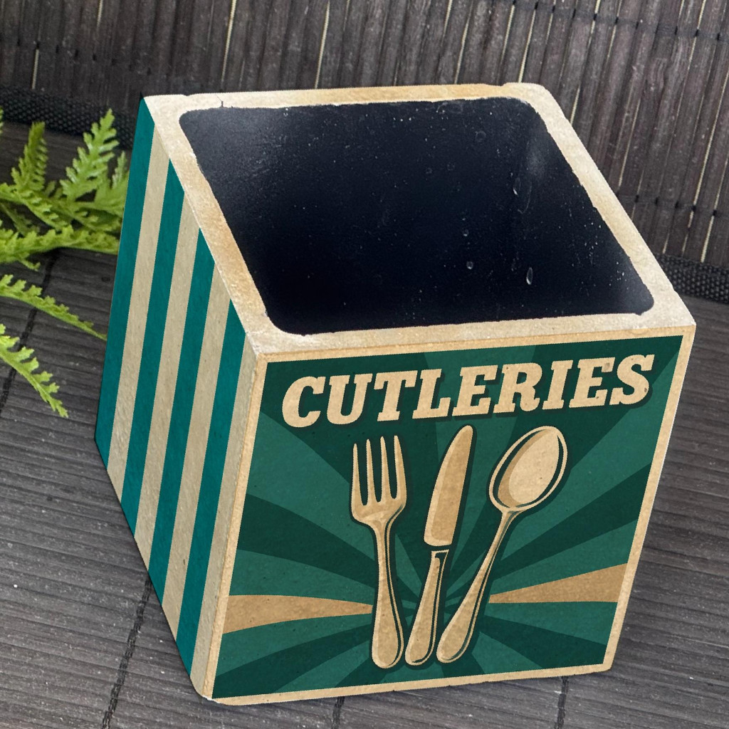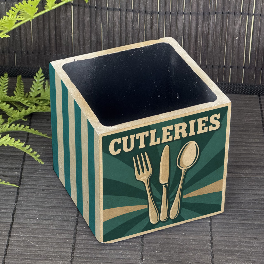 "Cutleries" kaspó - kocka, 4 oldalán mintázott beton tároló/ evőeszköztartó, fekete belsővel