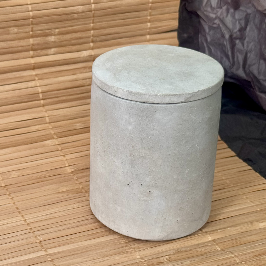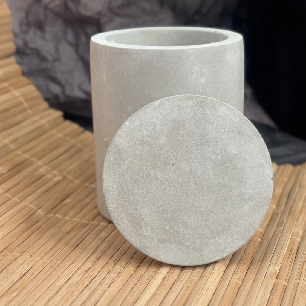 ∼ 8 cm külső, ∼6 cm belső átmérőjű és ∼10 cm magas henger alakú tároló.