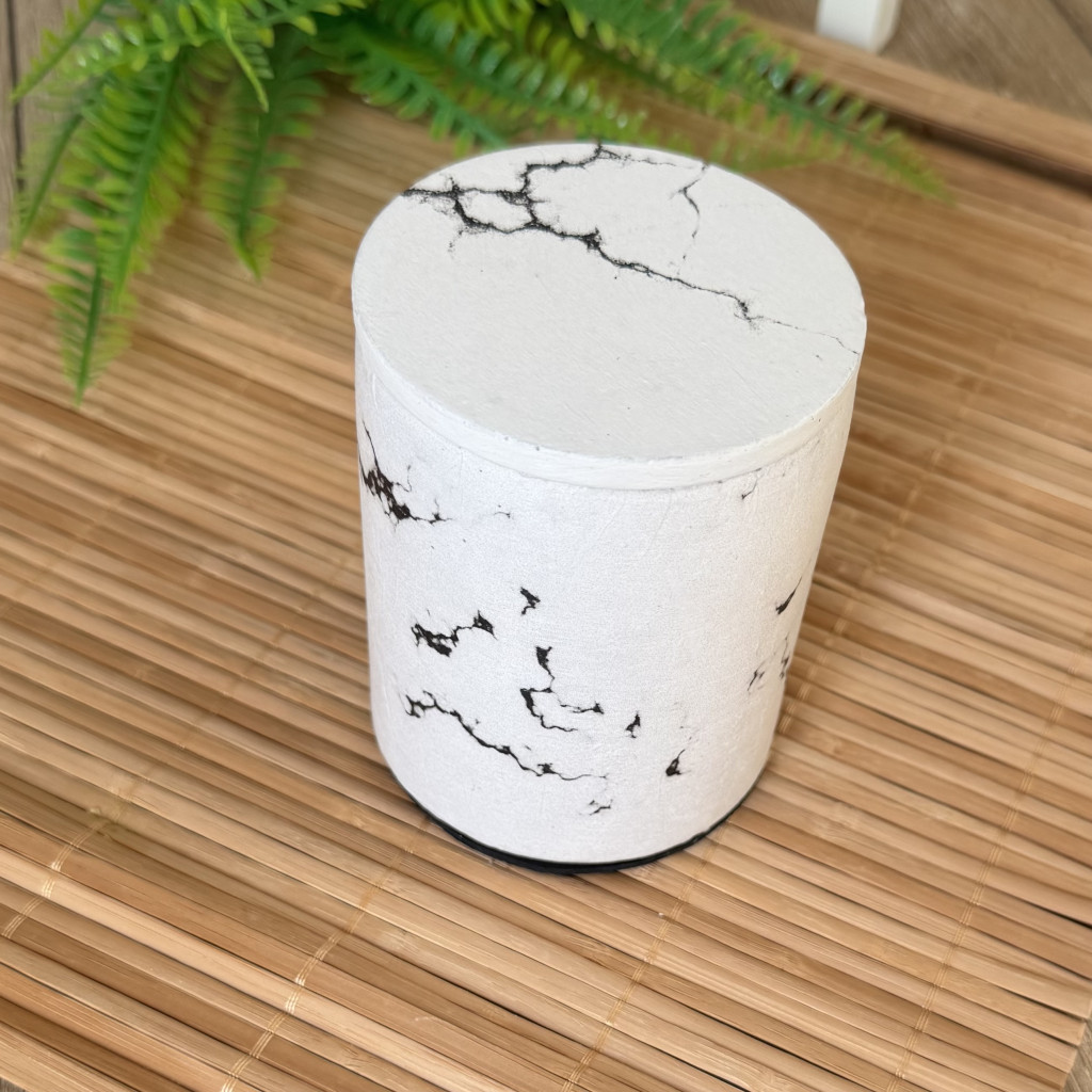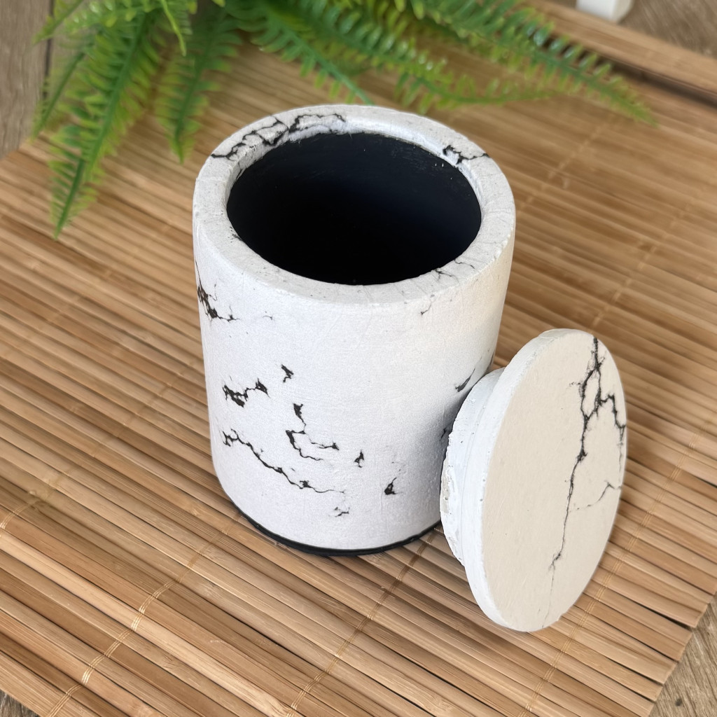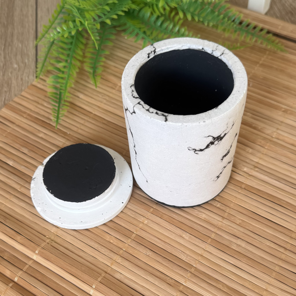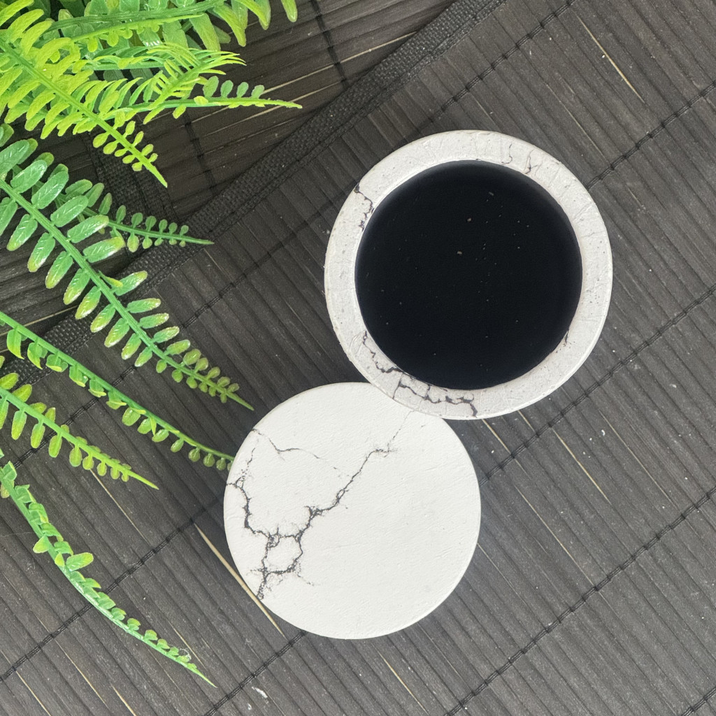 Anyaga beton, belül feketére festett, kívül pedig márványmintás.