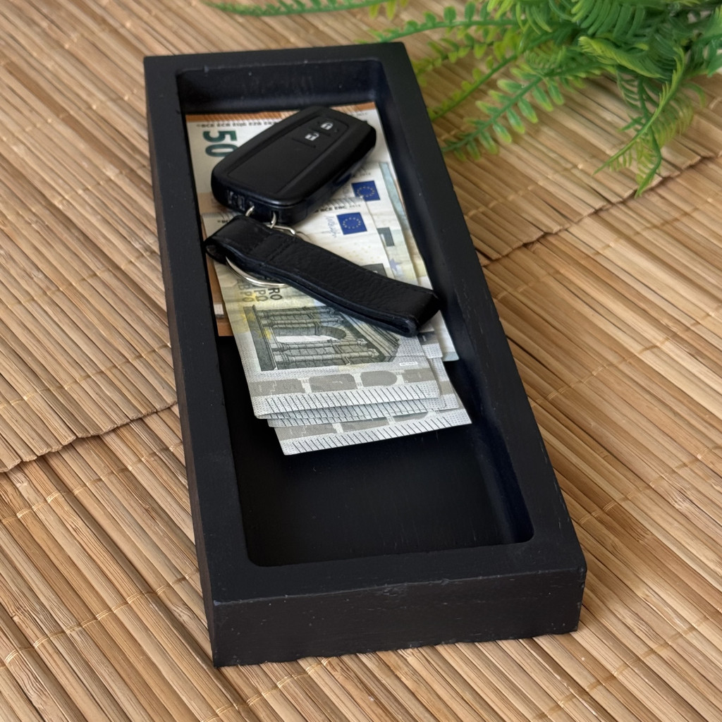 ∼ 29 x 10,5 x 3 cm-es téglalap tálca, magas peremmel.