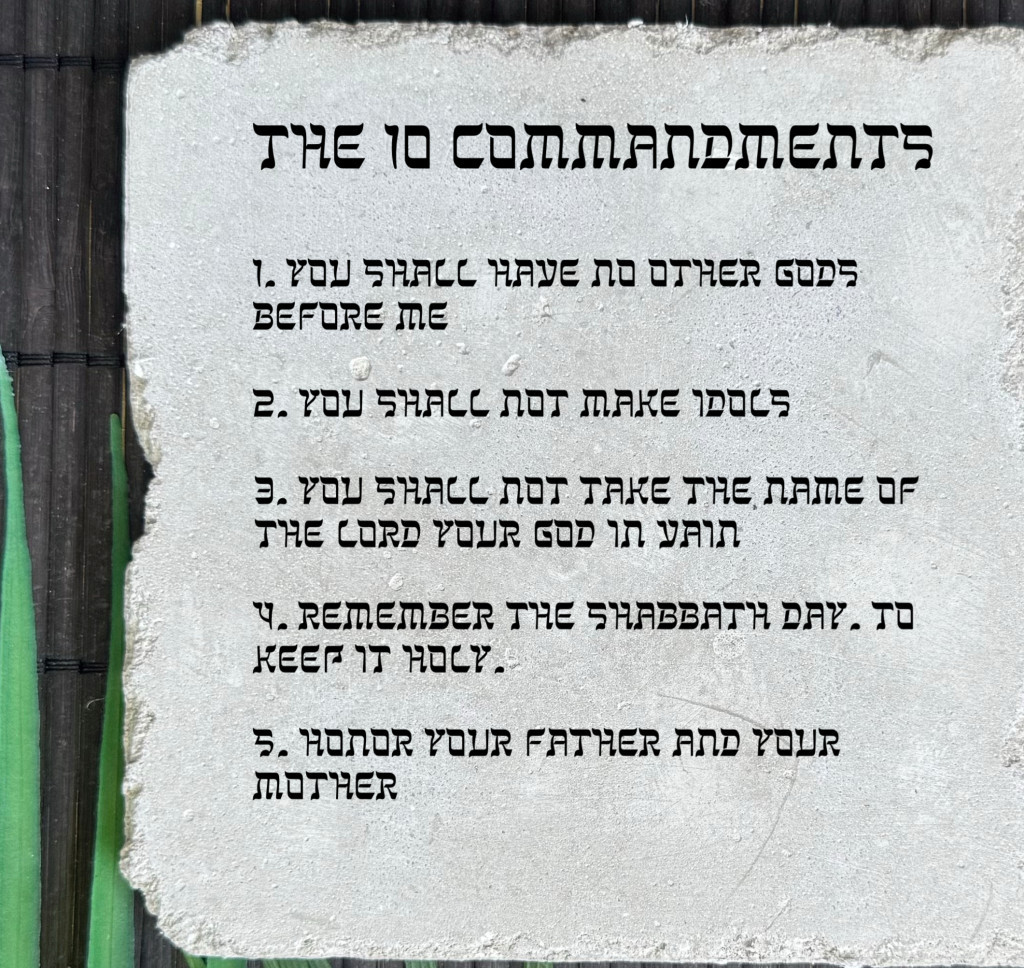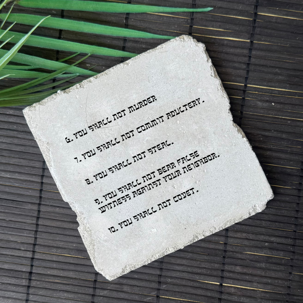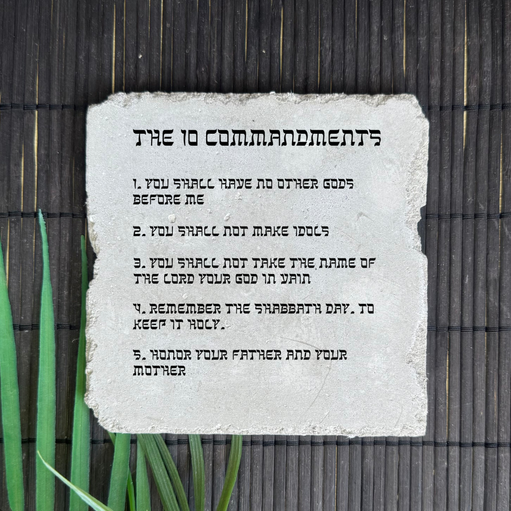 Anyaga beton, felüleltén a 10 parancsolatot tartalmazó mintával. (angol nyelven)
